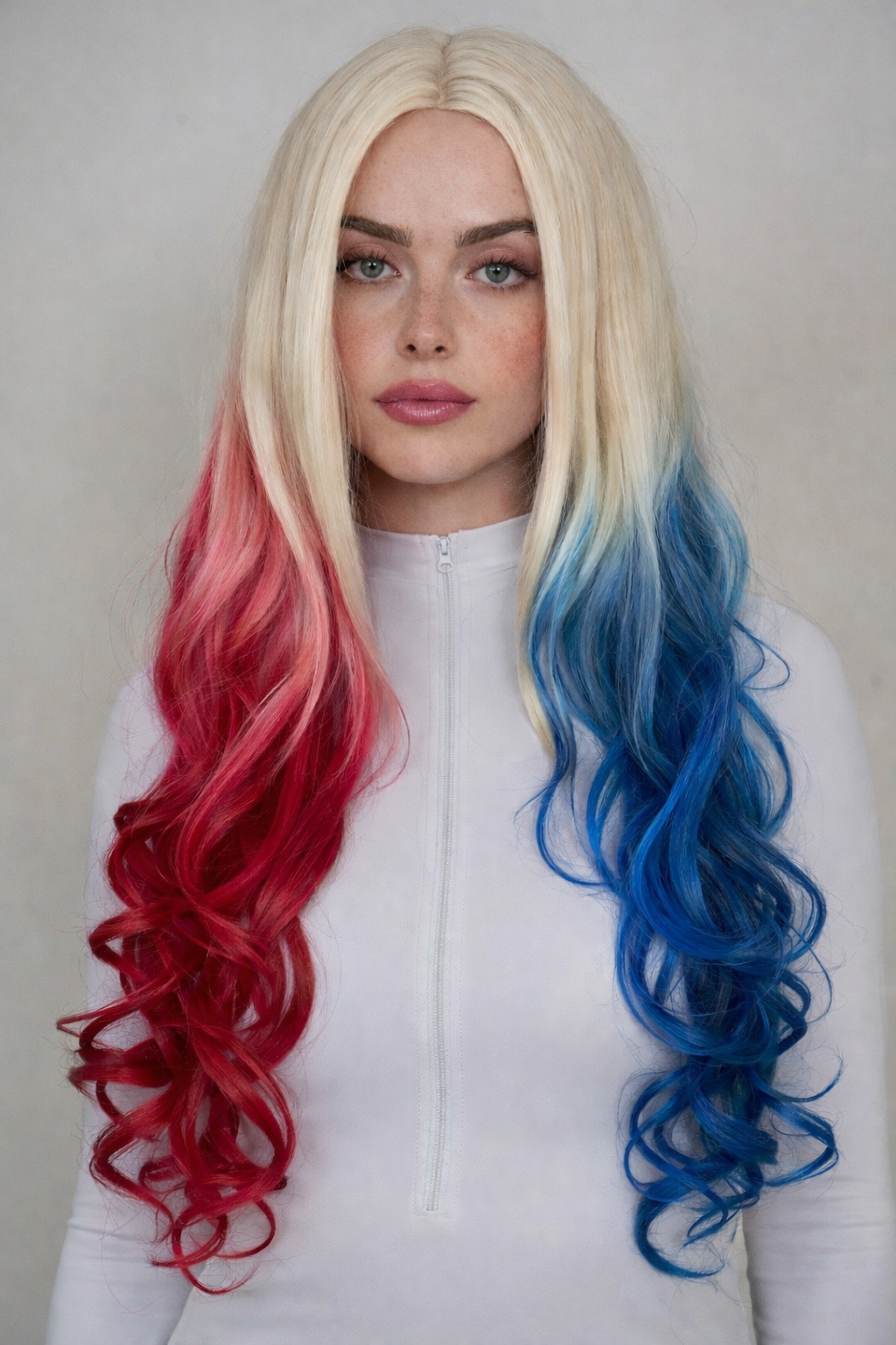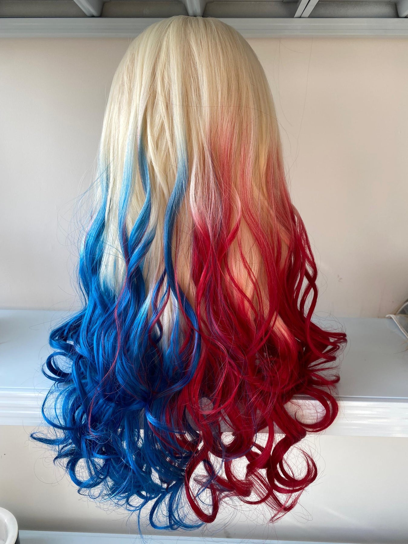 פאת פרונט לייס בלונדינית עם גוונים תכלת ואדום מטריפים!